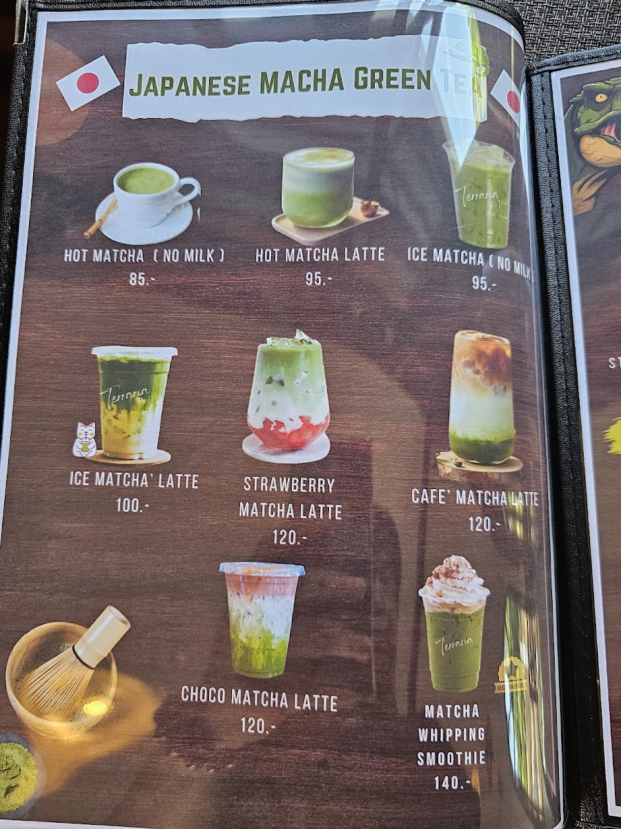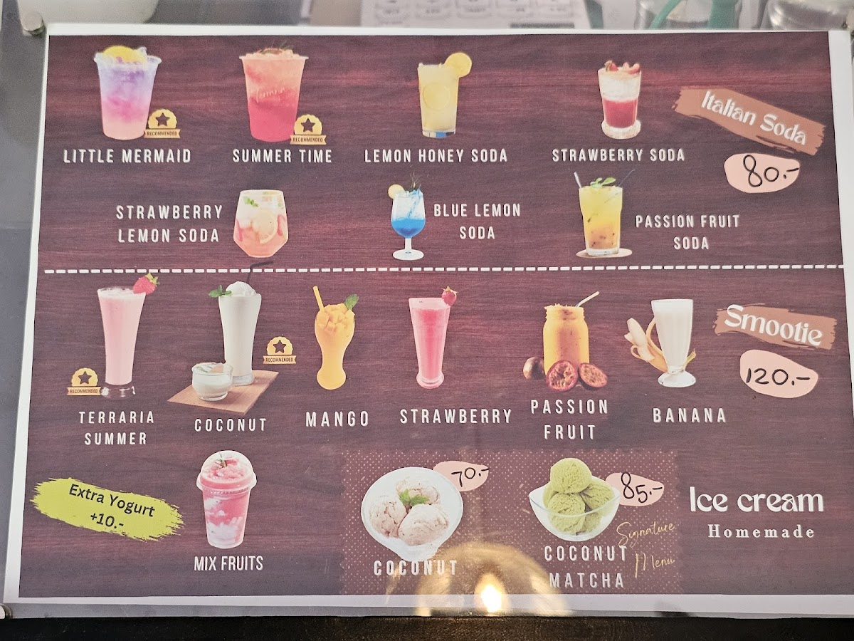 For dessert lovers, the coconut ice cream with mango is a must-try, while the rich dark chocolate ice cream and iced matcha latte provide delightful options to cool down. Whether you seek a quick bite or a relaxing leisurely meal, Terraria CAFE' promises a memorable culinary adventure in its charming setting.